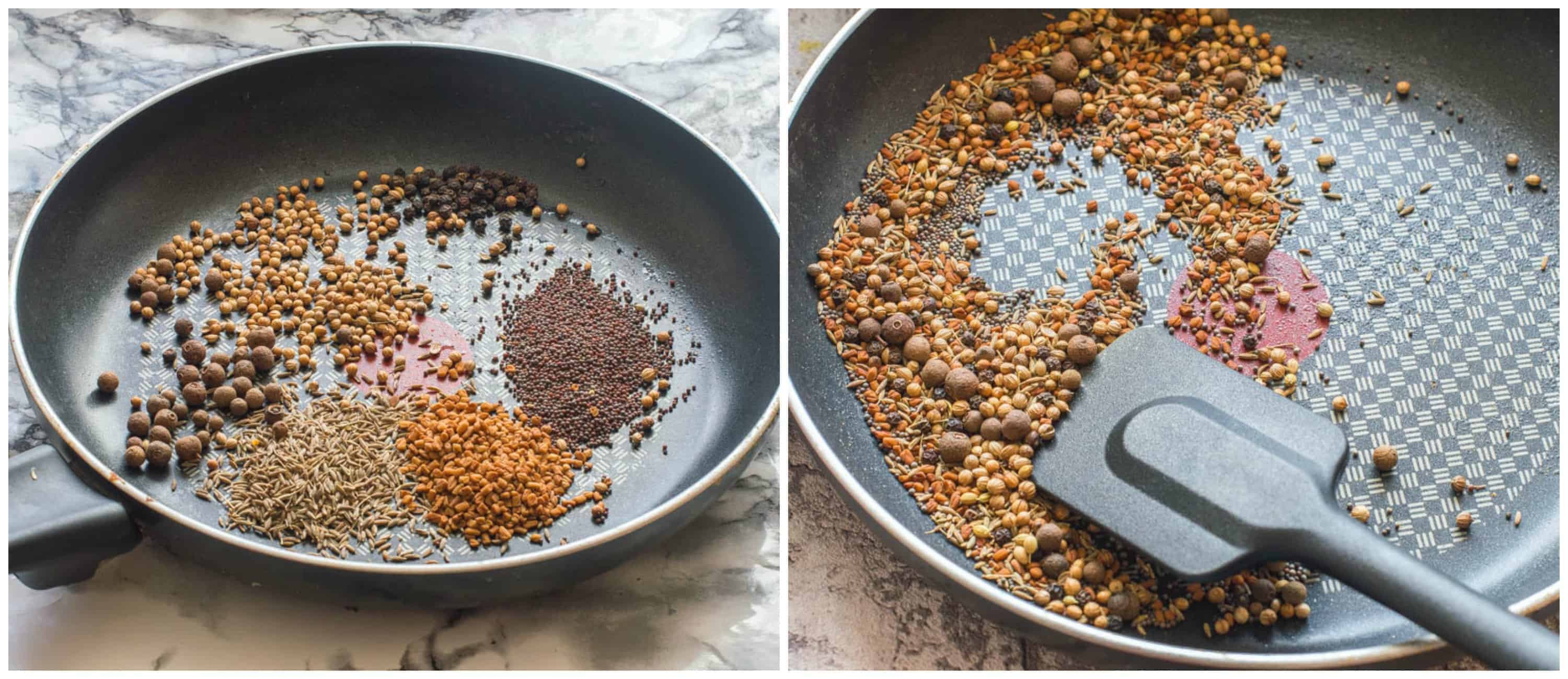 Step 1 combine the coriander seeds cumin seeds mustard seeds anise seeds fenugreek seeds and allspice berries in a skillet. Everyone has a spice jar of this in their pantry. Whilst there are some common ingredients in jamaican curry powder everyone has their own little variations which vary in flavour complexity and heat.